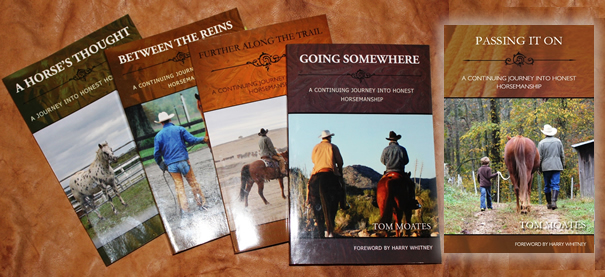 Tom Moates continues his journey into better horsemanship with the patient guidance of his mentor and friend, renowned clinician, Harry Whitney, in this fourth book of the series which follows A Horse's Thought, Between the Reins, and Further Along the Trail.  Jubal and other regulars return, and meet newcomers like Mister Dinky the Mule, as new challenges abound.  Ride along as Tom crosses 1500 miles of the west with Harry attending clinics and seeing first hand his life on the road.  Enjoy another stretch of this ongoing, epic trail as Tom learns new horsemanship lessons and is constantly Going Somewhere!